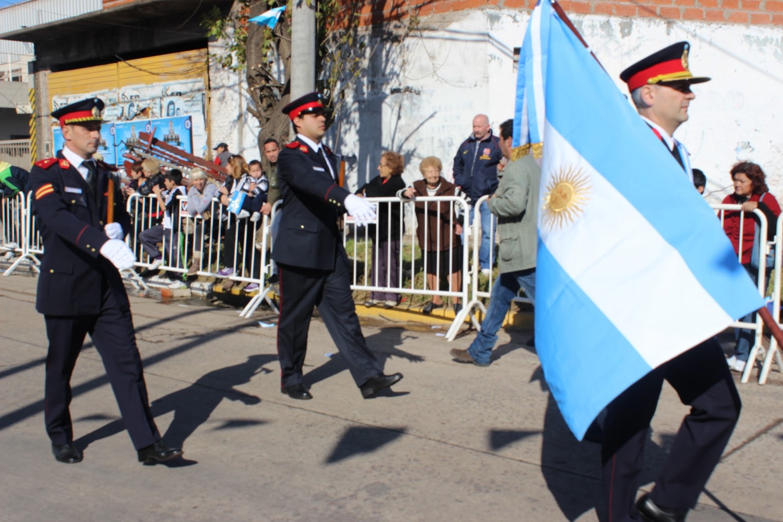 | A pleno sol el público acompañó el paso de los Bomberos. |
